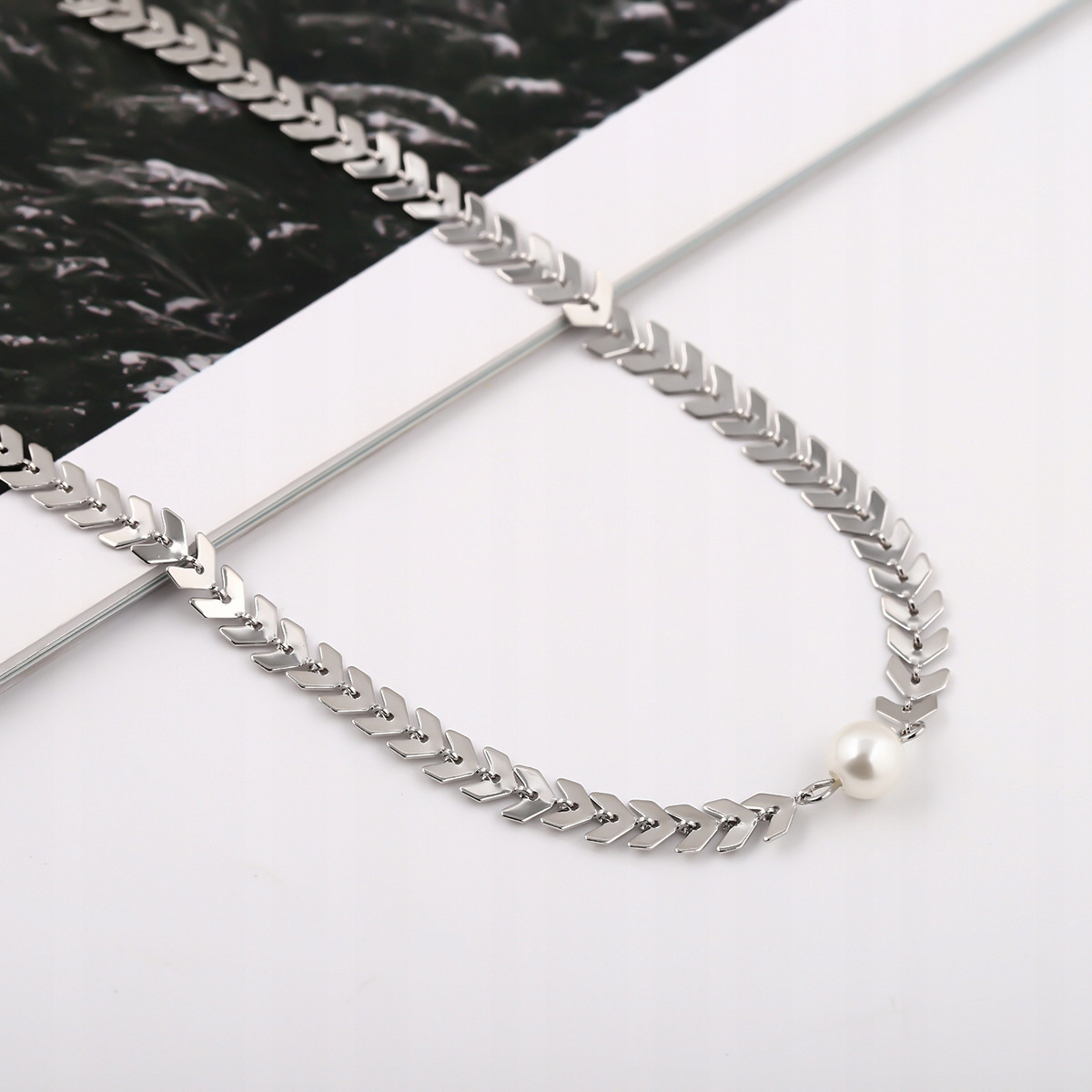NASZYJNIK ŁAŃCUSZEK MOTYW LISTKÓW Z PERŁĄ CN01