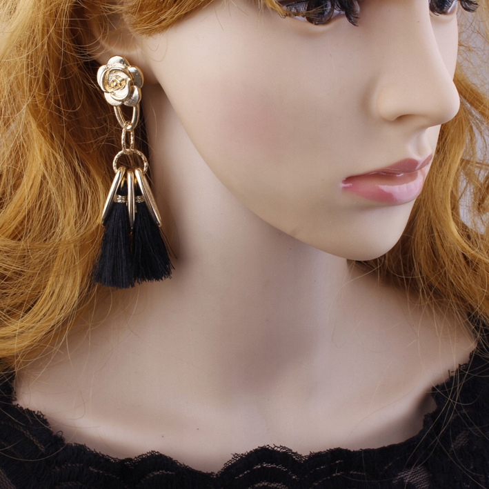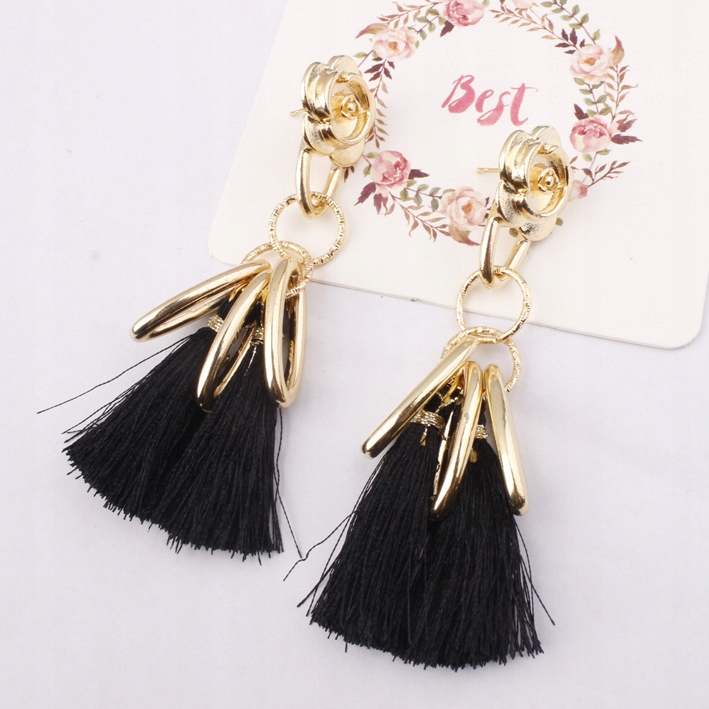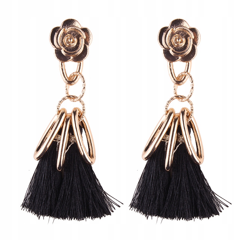 DŁUGIE KOLCZYKI RÓŻYCZKI Z FRĘDZLAMI
