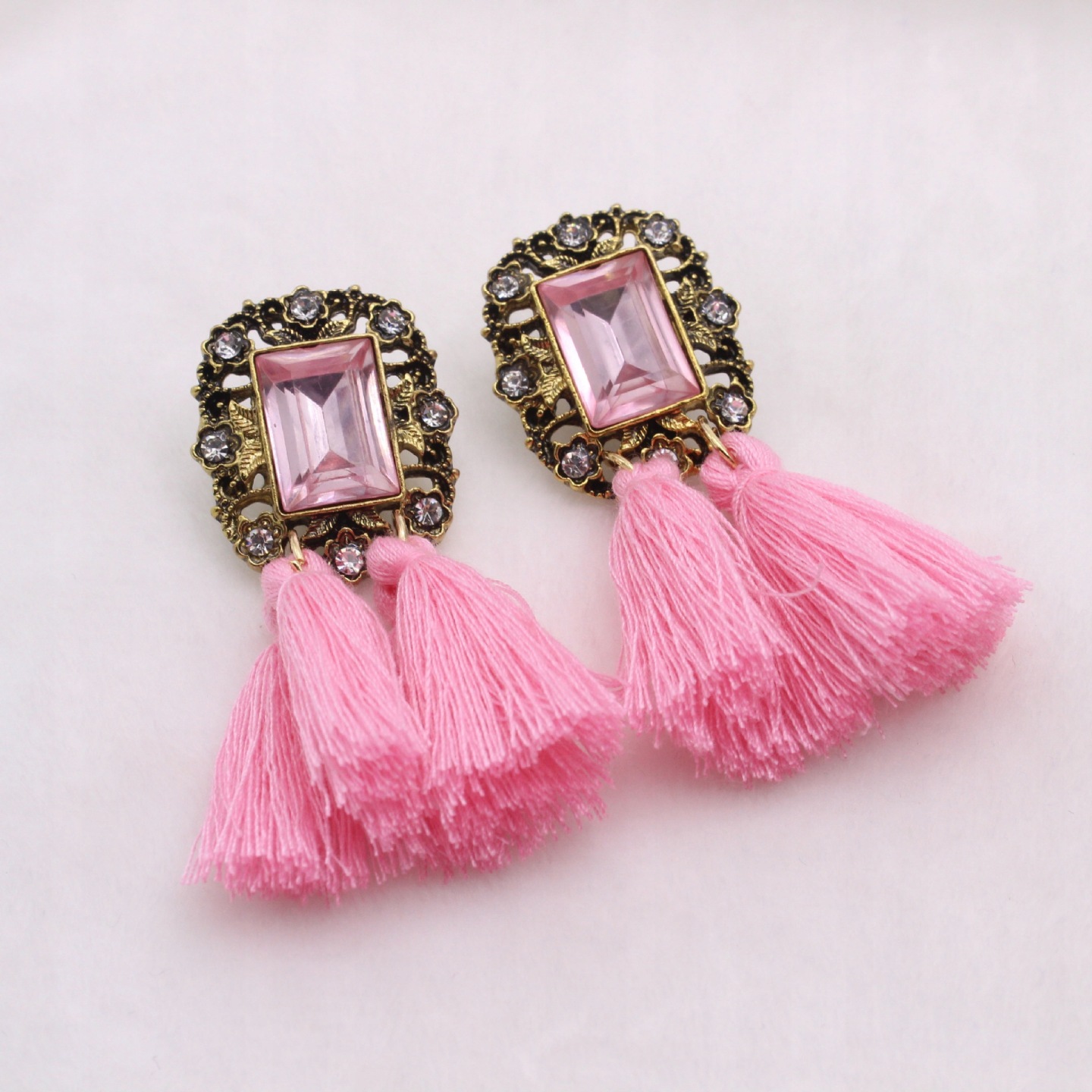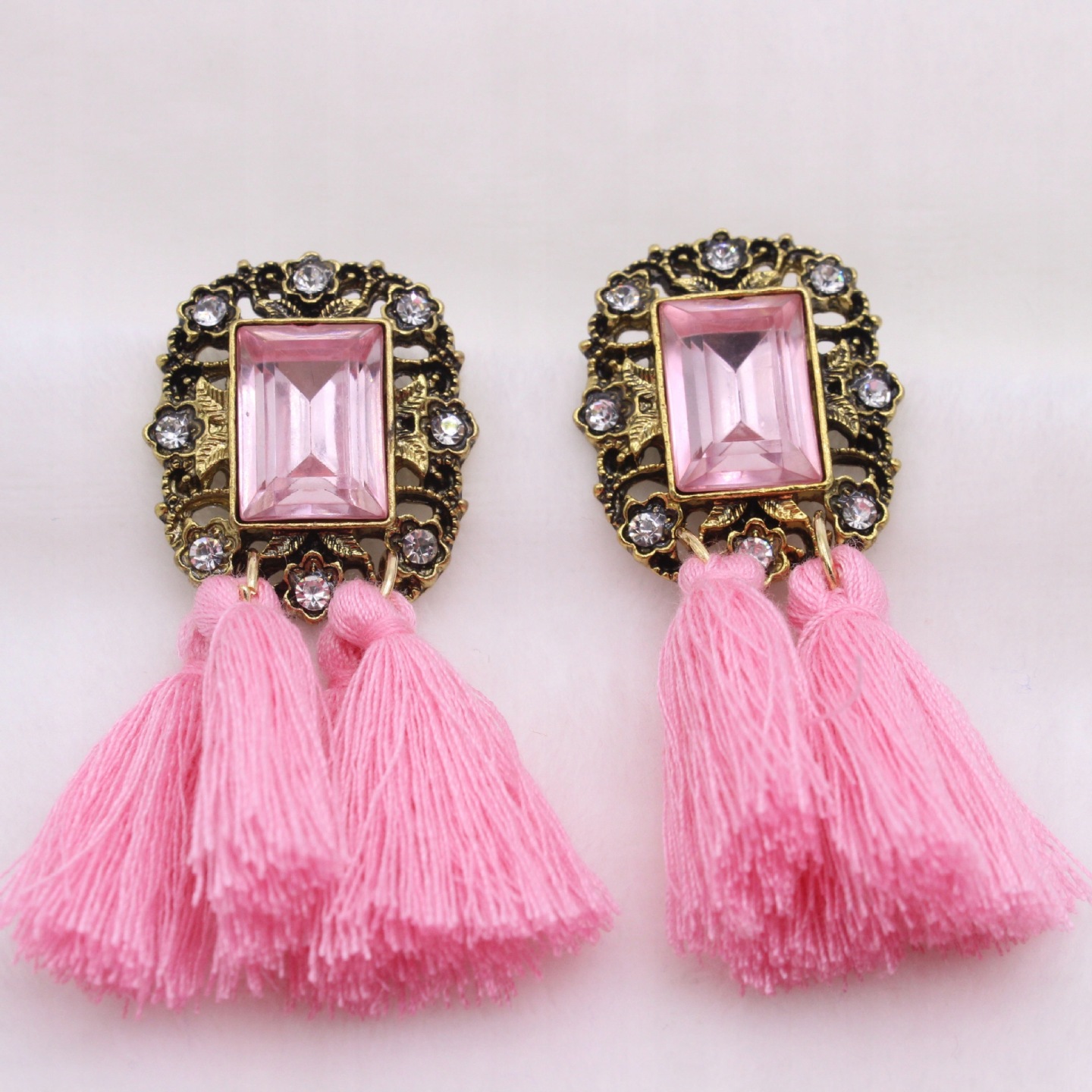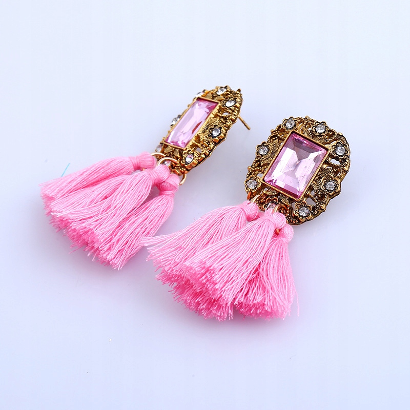 KOLCZYKI FRĘDZLE Z DUŻĄ KAMEĄ I CYRKONIAMI