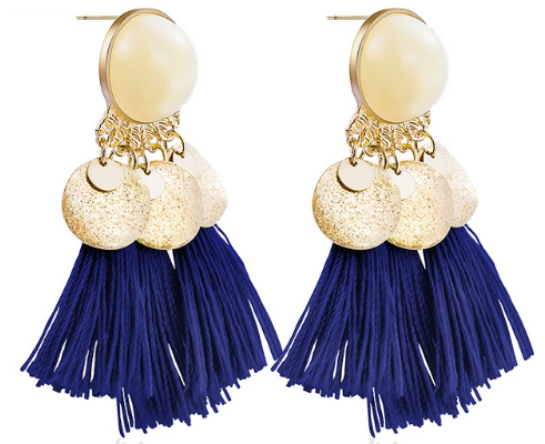 DŁUGIE KOLCZYKI FRĘDZLE GRANATOWE