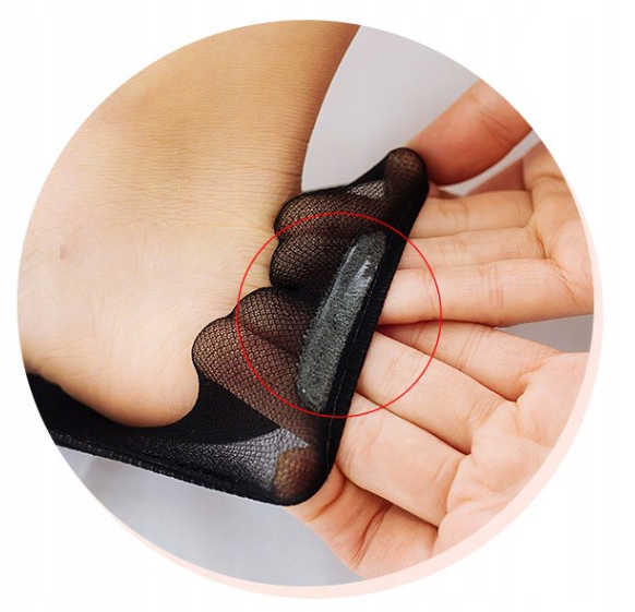 Posiadają silikonowy pasek na pięcie, dzięki któremu skarpetki nie ześlizgują się.