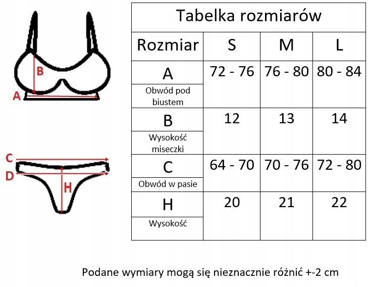 Dół stroju to standardowy krój fig, z dodatkową podszewką i falbankami. Posiada zabezpieczenie przed pierwszym użyciem.