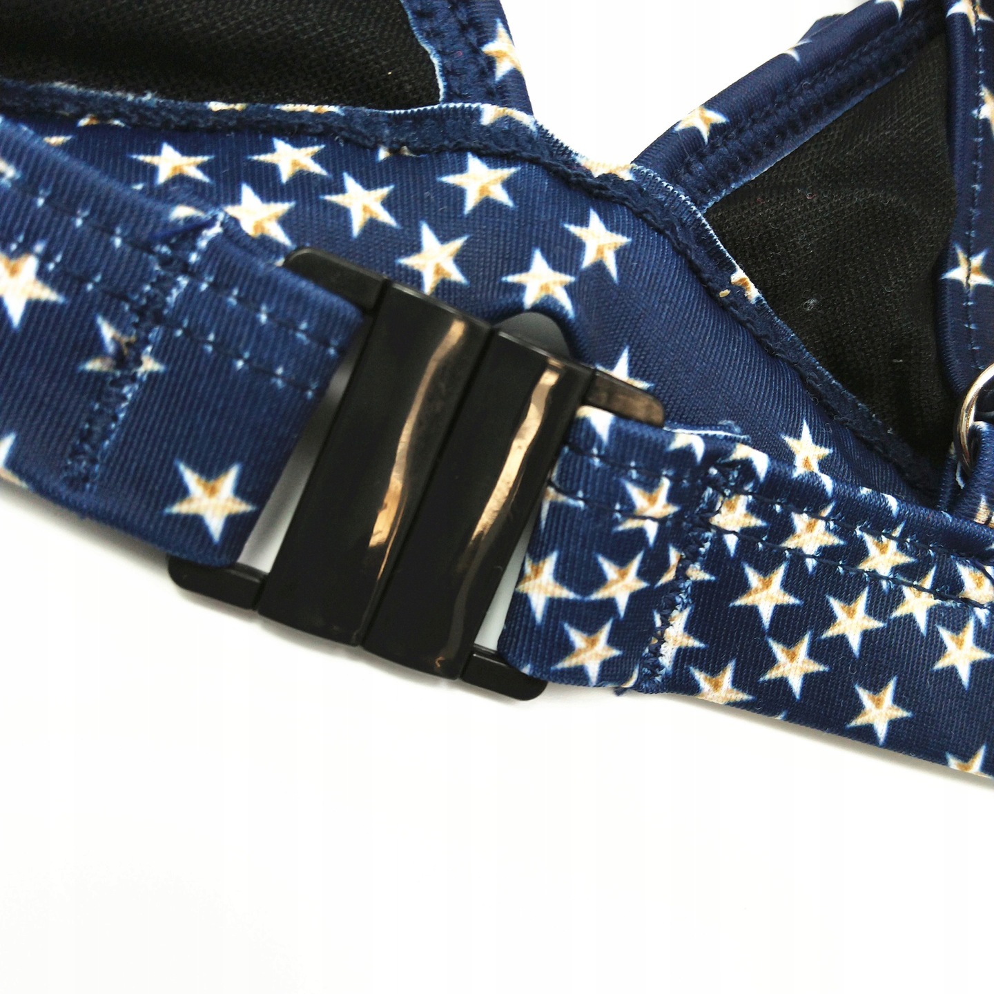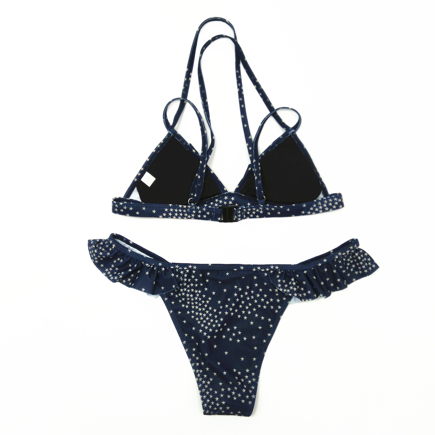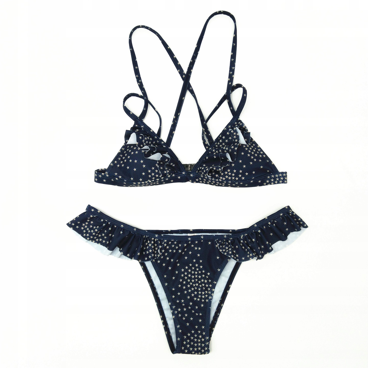 Kobiecy i niezwykle seksowny komplet kąpielowy składający się z biustonosza oraz fig. Oryginalny wzór w gwiazdki pozwoli wyróżnić się na plaży!