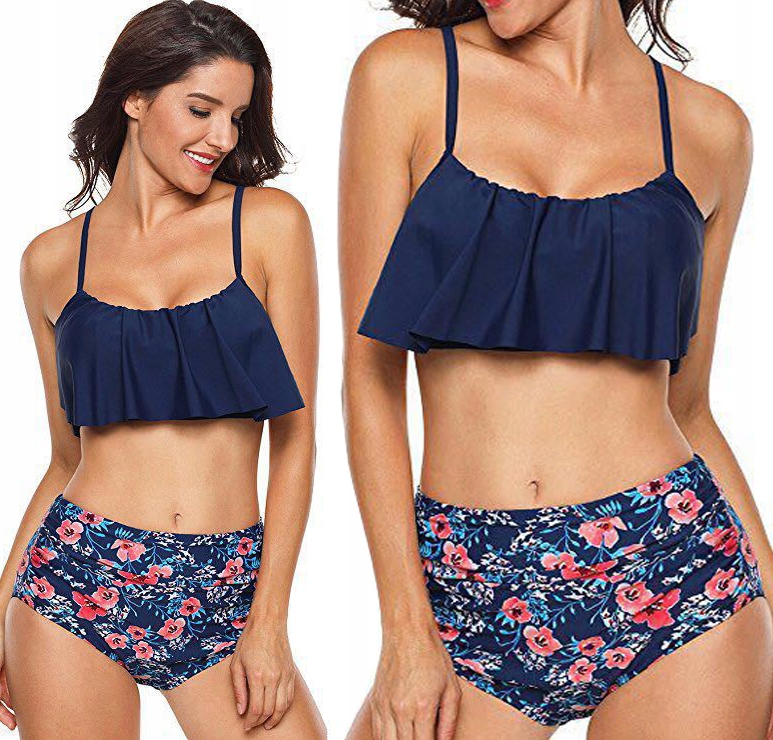 Dół stroju to standardowy krój fig o podwyższonym stanie z dodatkową podszewką z przodu. Gustowne marszczenia z przodu majtek.