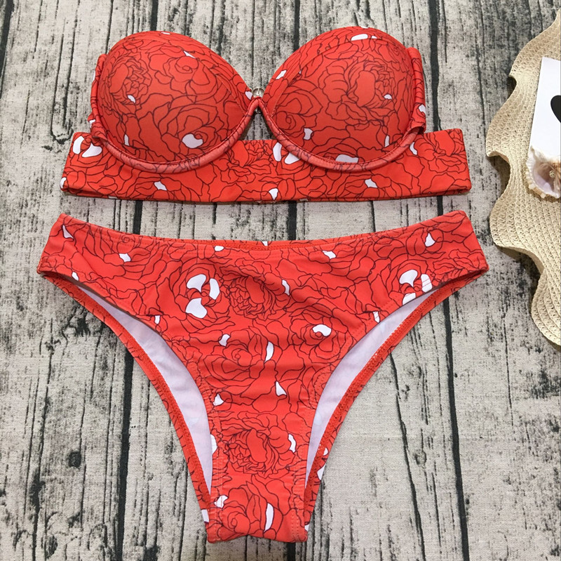 Dół stroju to standardowy krój fig, wykonany z podwójnego materiału. Posiadają wkładkę zabezpieczającą przed pierwszym użyciem. Biustonosz z fiszbinami, w środku dodatkowe usztywnienie. Dzięki mocnej gumce pod biustem konstrukcja biustonosza jest stabilna i nic się nie przesuwa.