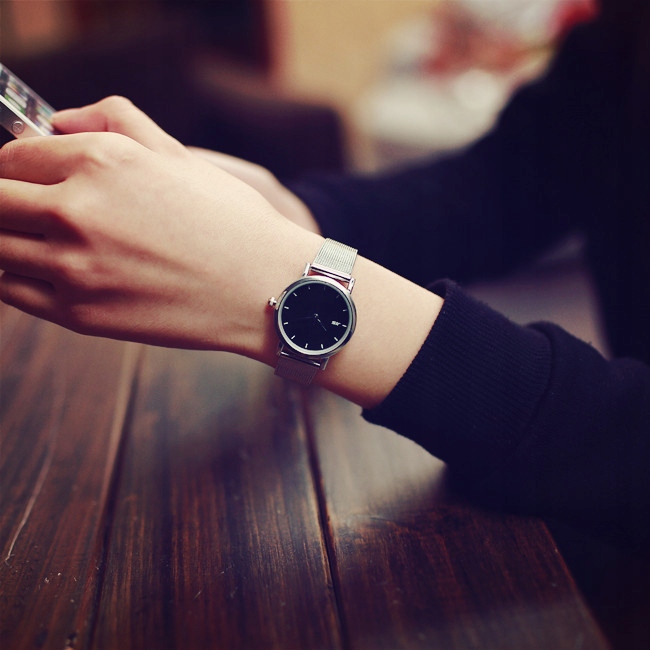 Zegarek na metalowym pasku MESH w kolorze srebra